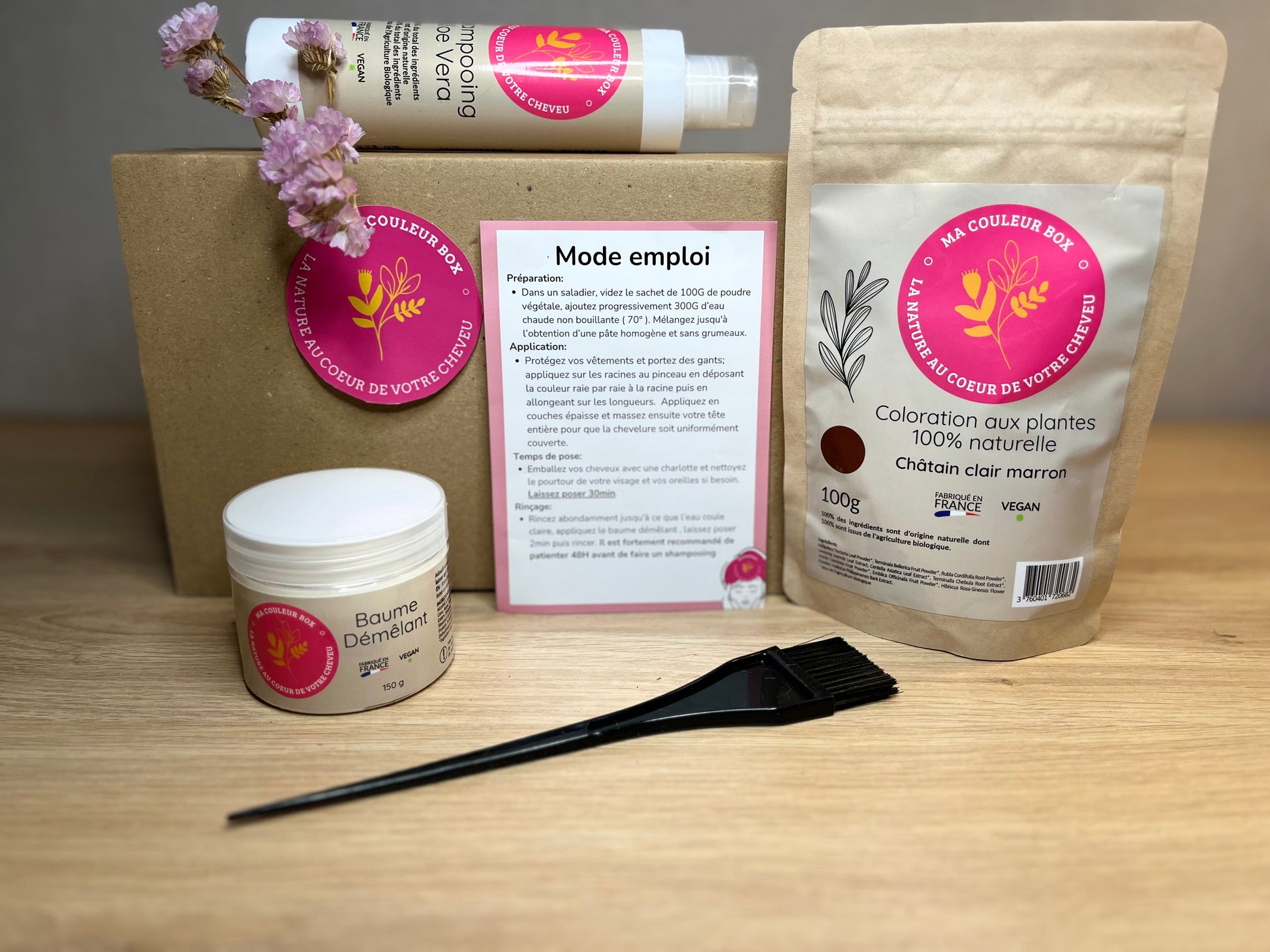 6Présentation de la Box de Coloration Végétale "Châtain Clair Marron"