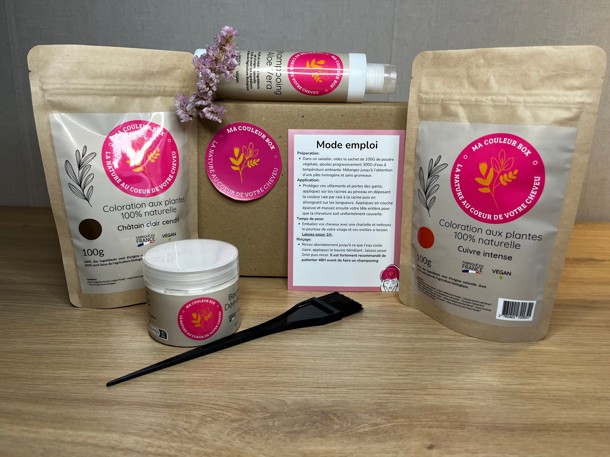 Notre Box de Coloration Végétale "Châtain Clair Cendré + Cuivre Intense"