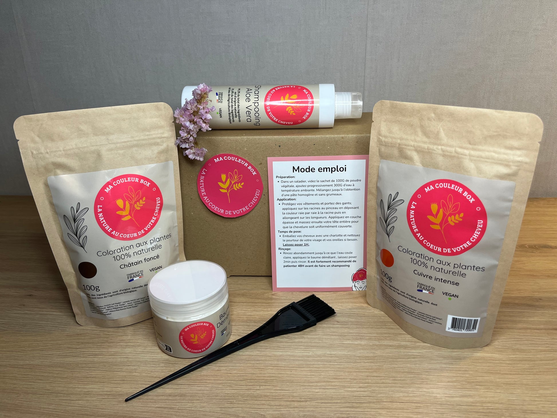 Présentation de la Box de Coloration Végétale "Châtain Foncé + Cuivre Intense"